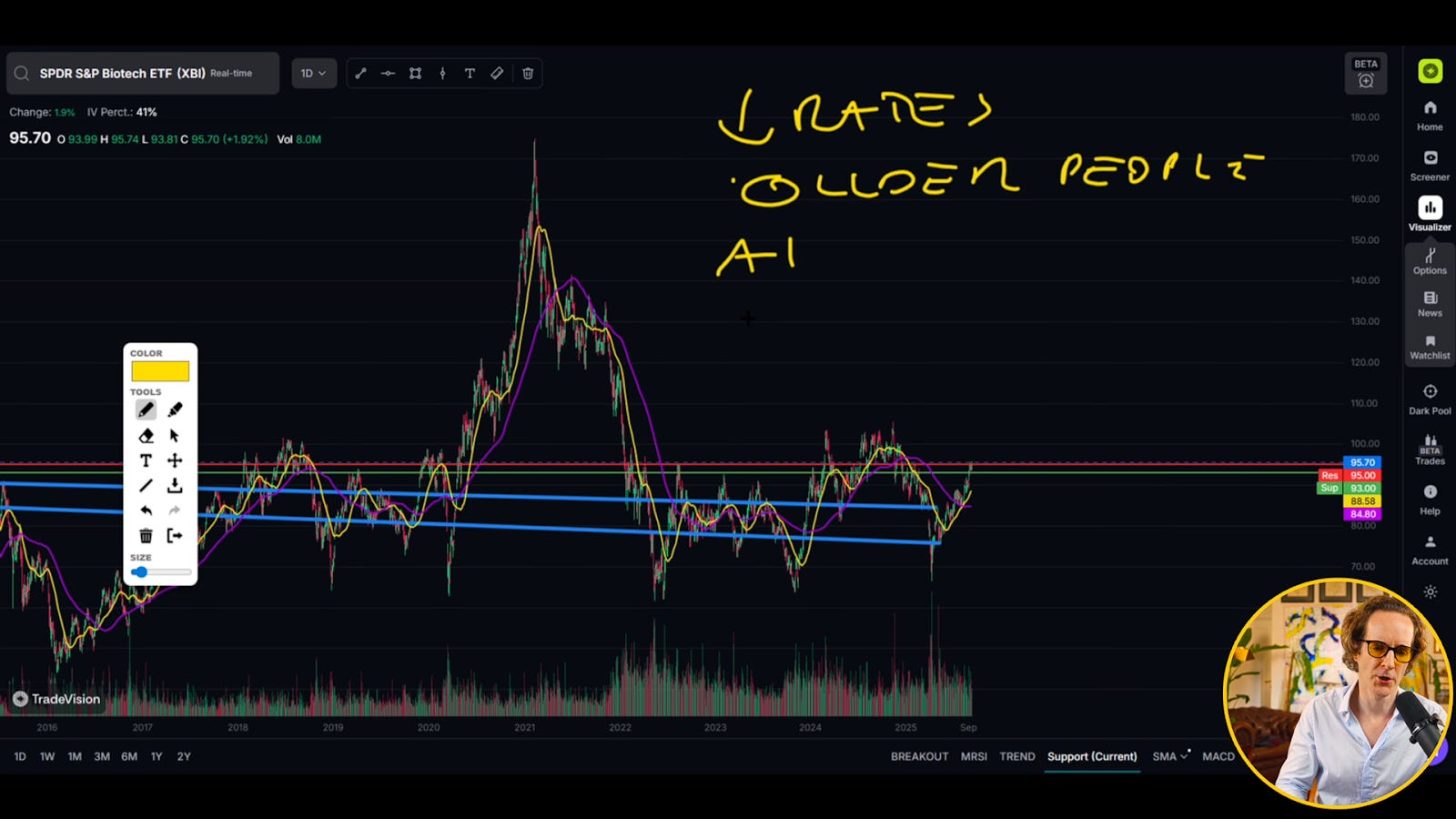 Biotech is very sensitive to rates. Lower rates help funding, M&A, and investor risk appetite. AI is cutting drug‑discovery costs, and an aging population supports long‑run demand.