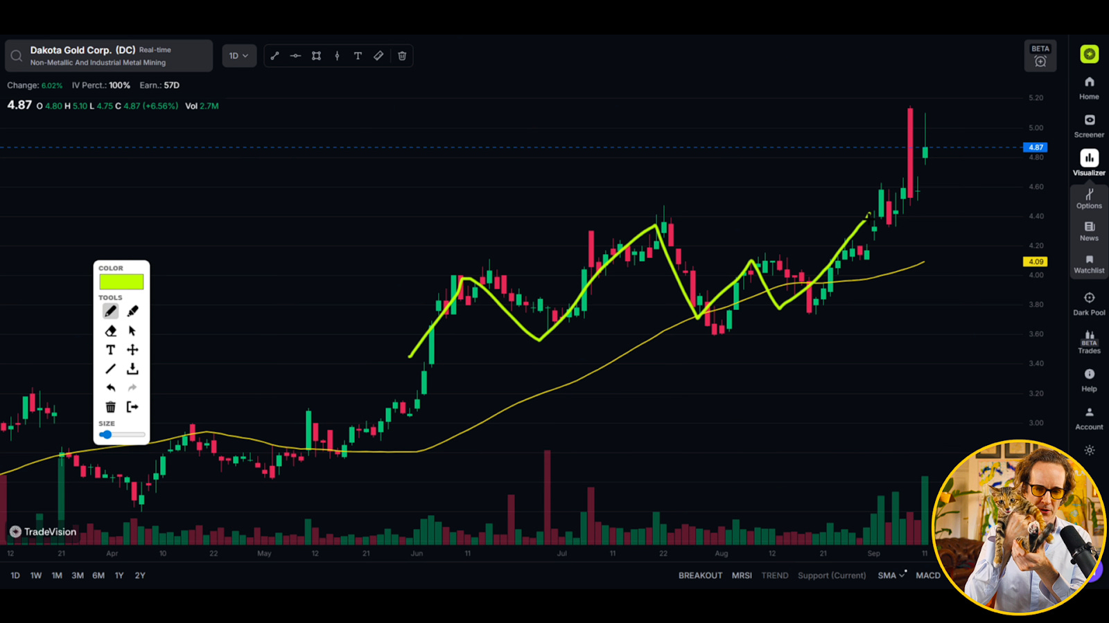 Volume: The number of shares traded. Rising volume during moves can confirm strength.